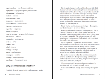 This version of Mnemonics for Study (2nd ed.) has an extensive English-Italian glossary (750 words) to assist Italian readers. The relevant glossary is provided after each section, and these section glossaries are all included in the Table of Contents for easy reference. A complete glossary in alphabetical order is also included at the end of the book.